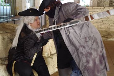 Rakuyo (Weapons): Made from insulation foam board, Long blade and short blade secured with magnets in the handles. Painted with Acrylic black and silver.